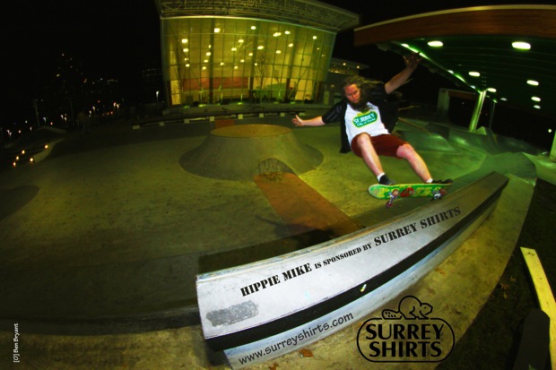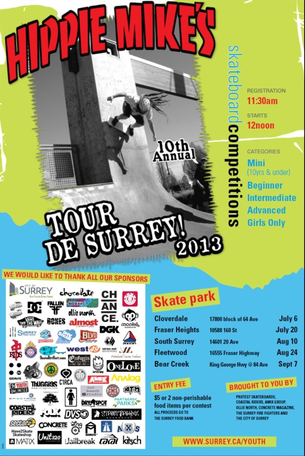 It was one of the first big contests of the 2013 season, and Dan Pageau couldn’t have chosen a better date. The Spring Kickoff Contest at Pitt Meadows lived up to it’s name by being on a beautiful Spring Day, and the day the clocks move ahead. Tons of kids showed up, lots of Locals for Pitt Meadows and Maple Ridge, and lots of the One Love Skate Shop Crew. Lanny Deboer and Andre Tsougrianis both hung out and skated a bit, Lanny won the highest air contest out of the bowl, and then MC’d a bunch of the contest. But we had a full sized crew show up from Surrey and Delta, including Jordan Strong, Brendan Nielsen, Ryan Barron, Jacob Drescher, Mathew McCauley, and JR Barron, along with Hippie Mike, Carrie Williams and Jaden Easton-Ellett with the Protest Skateboards Tent.