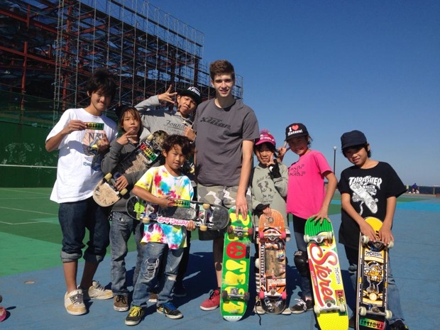 I was surprised to see that the two girls standing to my left in the picture named Kokona and Mizuki were already able to do some freestyle. The two of them were usually skating next to each other doing some footwork and some incredibly stylish 360’s. I found out later they learned from some of the other freestyle locals at various parks in Japan. That’s the awesome thing about kids is that they are excited to learn and have lots to say regardless of what you might look like. The thing is, being a foreigner in Japan (especially if your non-Asian) you will usually be subject to one of two things by people you run into for the first time.