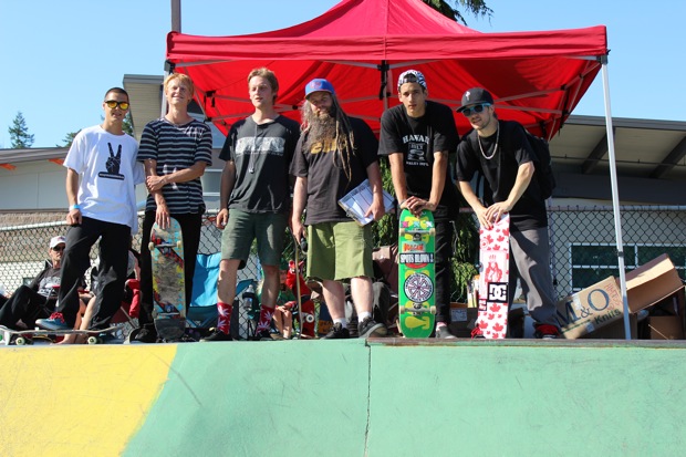 At the end of the day I finally announced all the winners from each category and we got photos of all the Top 3 with their plaques. I gave out plaques for Most Improved Skaters to JR Barron and Aiden Eastman who just destroyed it at every contest this year, and announced the last ever King of Surrey. The trophy went to Weston Ganger who definitely skated hard, solid and consistent all summer and took home a bunch of prizes at each event. He won this one too which made it it all make even more sense.
