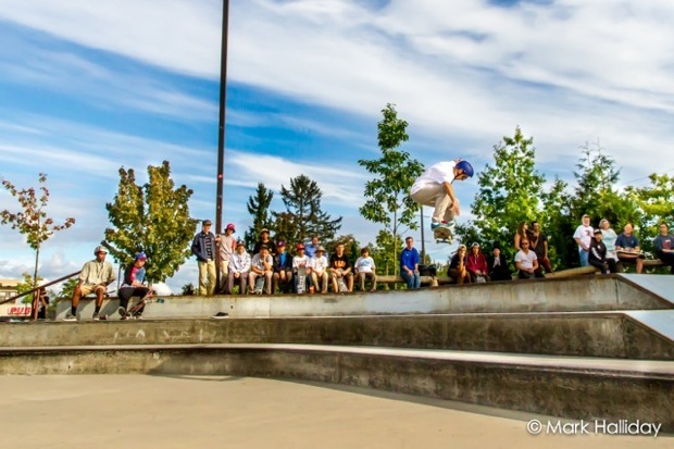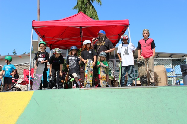 It went well. The kids in Mini and Beginner demolished the whole park. It was solid skating from everyone.Shayle Dahl finished off his 2nd run in Mini by blasting a perfect ollie down the 9 stair first try ever. All the kids were stoked, especially him. Max Stephans in Beginner did the same thing except with a Backside 180 – it was out of nowhere and perfect. Matthew McCauley almost kickflipped down it too. It’s just crazy to even be talking about a 9 stair in the same sentence as “Beginner and Mini Categories”. The City of Surrey is just creating a whole mess of amazing up and coming skaters with all these parks. Seriously.