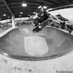 Best Trick in the Deep was pretty tight. Hopkins was obviously killing it but didn’t want to win of course, so it was pretty much between Max, Allen and Grant. Max was hitting every tough transfer in the place, but it was riding between Allen Handley’s Melon Grab Feeble Grind Fakie and a sick handplant by Grant for 1st place. Then at the last moment and final attempts, Max Bayko busted out a clean Nocomply Tailslide across the big wall. He shut it down and took home a sweet Protest Deck and Tshirt. Everyone that showed up got some sort of prize, ate too many hot dogs, and most of them left in a new Protest Skateboards Tshirt. That’s how we do it…