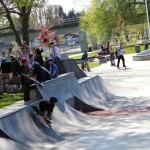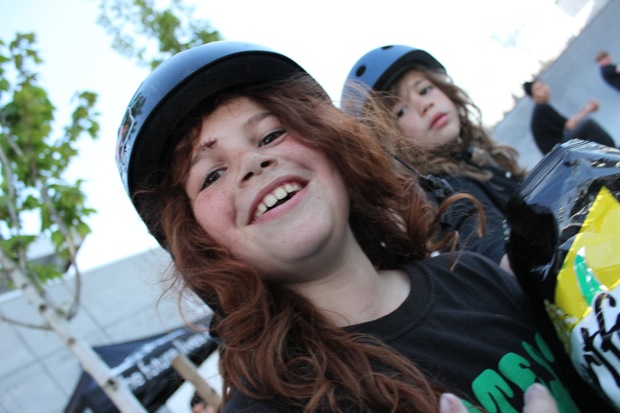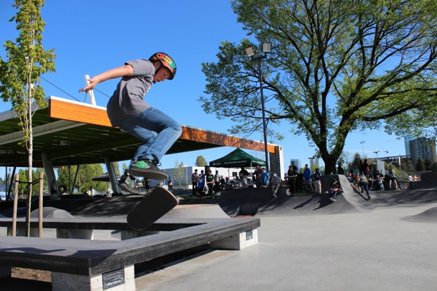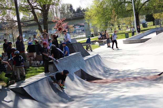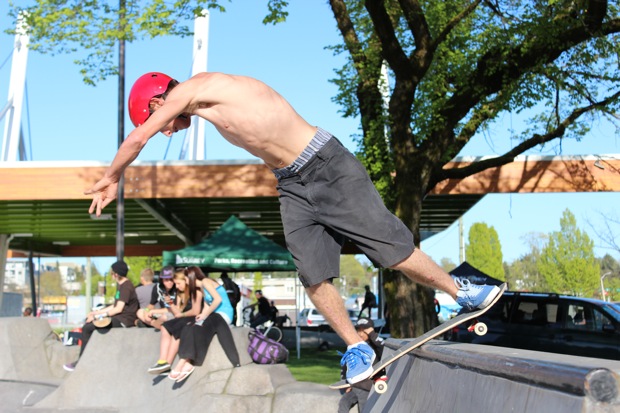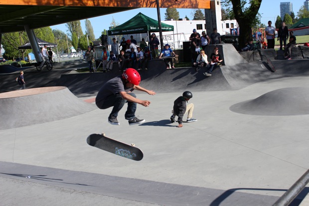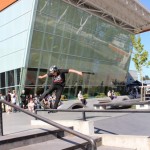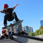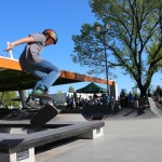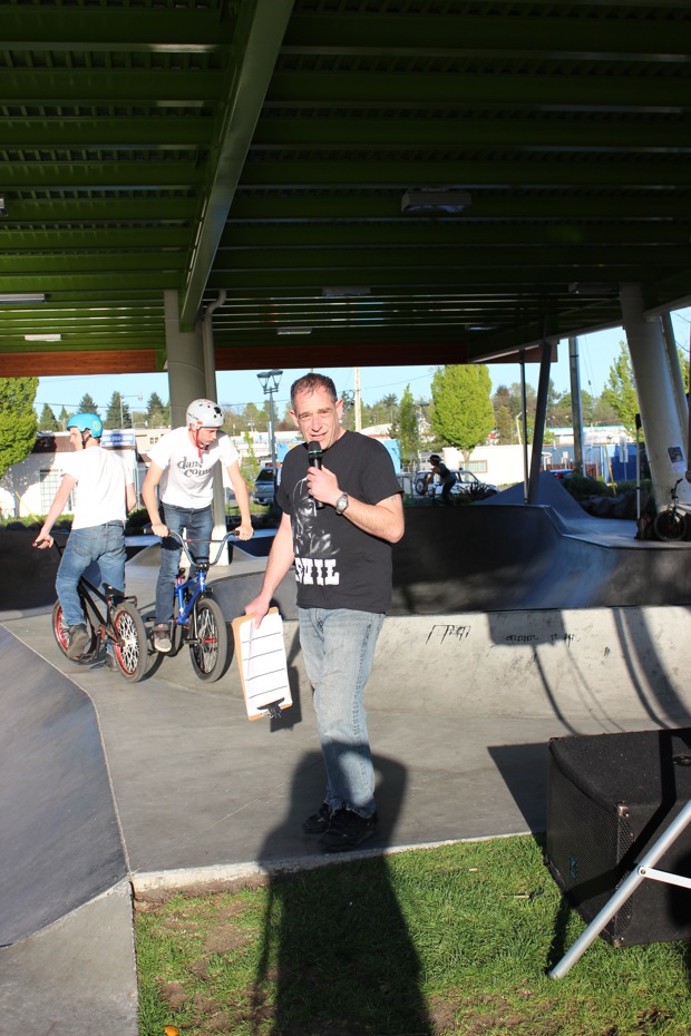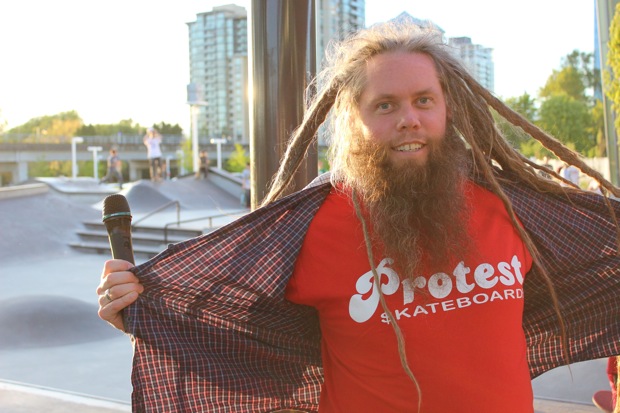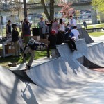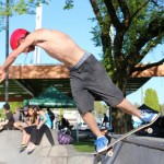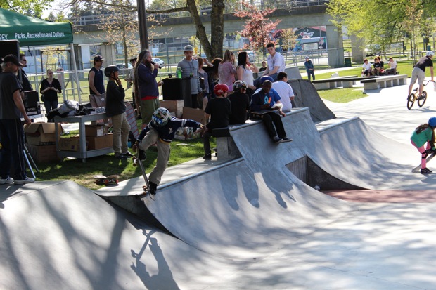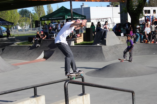 Organized by Jeff Cole in cooperation with the Vancouver Skateboard Coalition, Michelle Pezel at Anti Social, Thunderbird Community Centre and some others, the Vancouver Youth Week Jam was a hit yesterday. It was sunny, very warm, and lots of kids showed up. Old School Langley’s Thom Prior showed up to MC and run the events, with classic comedy of course. Thom actually used to co-MC events in Surrey back in the day with Hippie Mike. There were tons of “Trick Comps” on many different obstacles throughout the afternoon and most of the kids there took home a prize or two. Protest riders Andy Anderson and Brad Muscat cleaned up pretty good but gave some of what they won away to the younger kids that need it more.