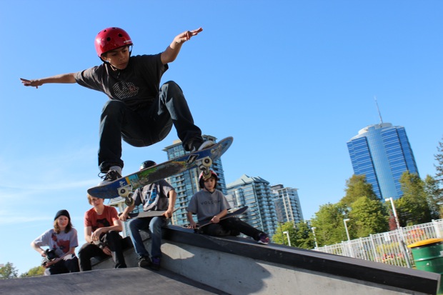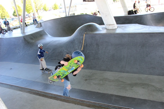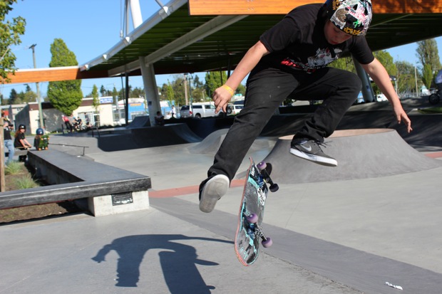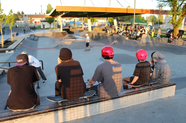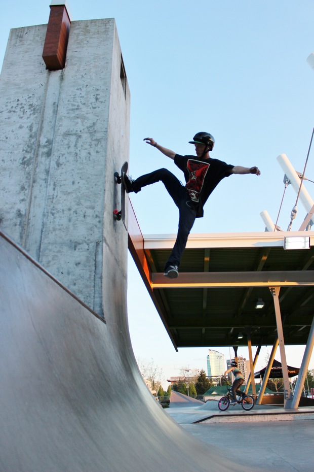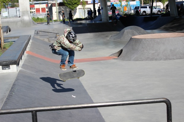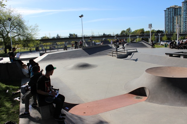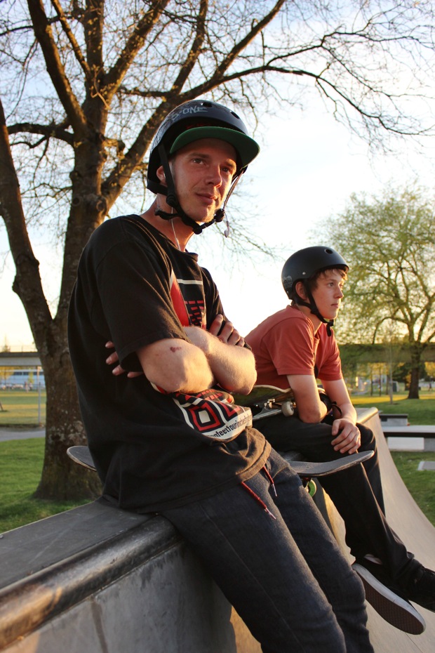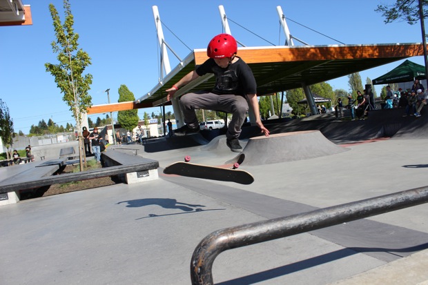 Everyone was invited and lots showed up. There were some Best Trick Comps for the different age groups and Mike handed out a bunch of prizes, but mostly it was just about hanging out together with some tunes blastin’ and having a good time. Amazing job once again for the City of Surrey building a Skate Park with a covered section, proving the opportunity for another successful event that ran while the rain was pouring down. It’s a luxury to have.