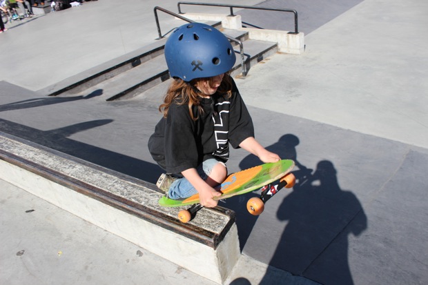 Adam Hopkins and Max Bayko shredded the deep end along with Allen Handley, Andy Anderson and Grant while the young bucks all shredded in the mini ramps. JR Barron and Riley threw down lots of tech tricks and Theo and Django Caseley impressed the crowd with their tranny skills. Especially Django at 6 years old dropping in on his knees and grinding coping in the 7 foot – Crazy!