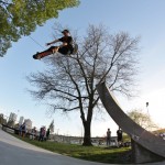 The BMX Contest ran as a Jam for about 40 minutes in between the qualifying runs and Finals for the skateboarding and most people were patient enough during that time, but the real deal was the skate comp. 4 Categories – 9 & under, 10-13, 14-18 and 19 & over, and all 4 of them were stacked. The 9 & unders all ripped as hard as they could, with Emmanuel N. Busting an ollie down the 3 block at 8 years old, and 7 year old Django Caseley putting on a knee boarding demo. The 10-13 yr old category was intense. JR Barron, Mathew McCauley and Adam Lewis all destroyed it – ledges, rails and tech tricks over every gap there. The 14-18’s was dominated by Fighter (Brad Muscat) and The Dominator himself – Dominic Devries. Gabe Dinorscio was there but had to leave before the finals, it would’ve been nice to see how he would have fit into the winner’s circle if he had been able to stick around. And then there was the 19 & over category. Francois LeBlanc was on his ledge game for sure, but so were Yuya Ishikawa and Calvin Dignard. Allen Handley and Eve Feaver also made finals for killin the tranny, but Nothing was stopping Calvin form winning that one.