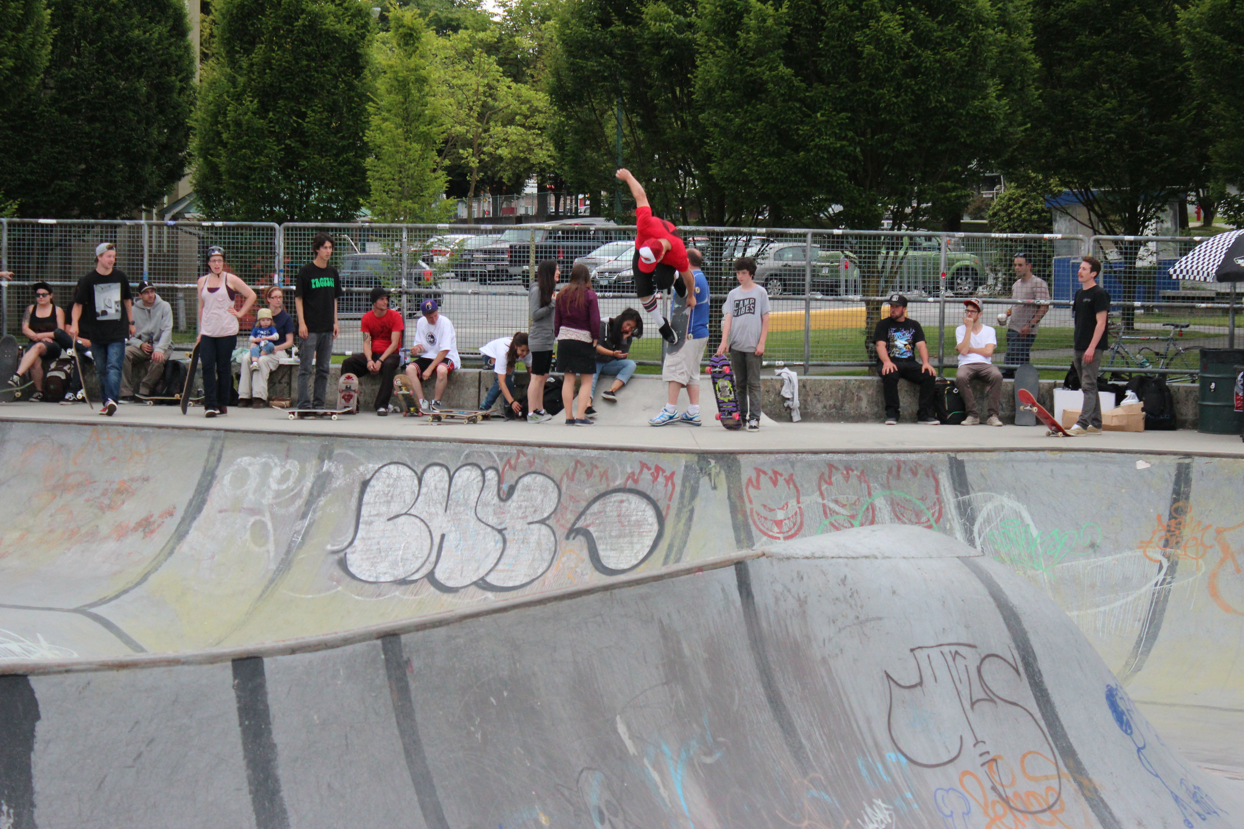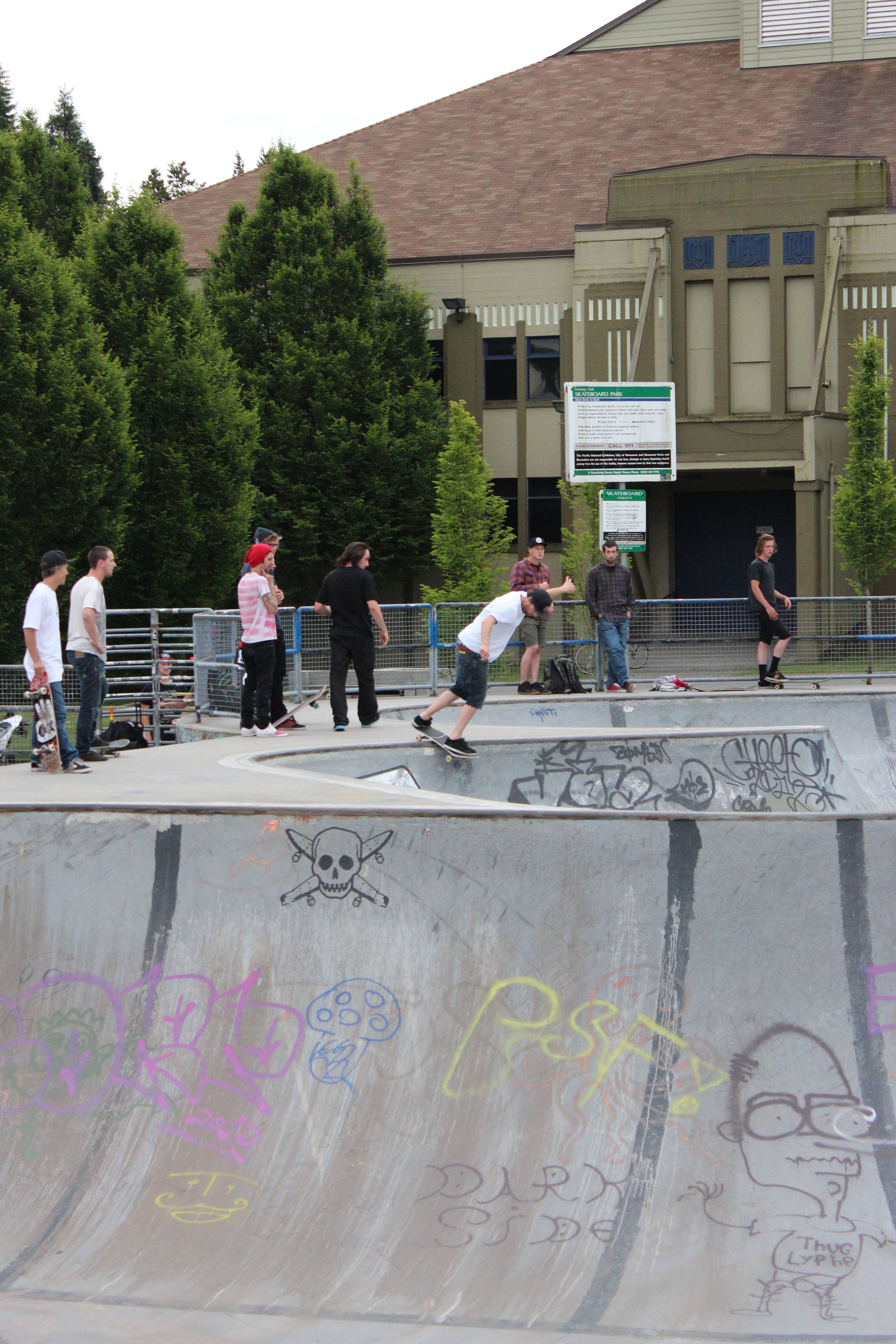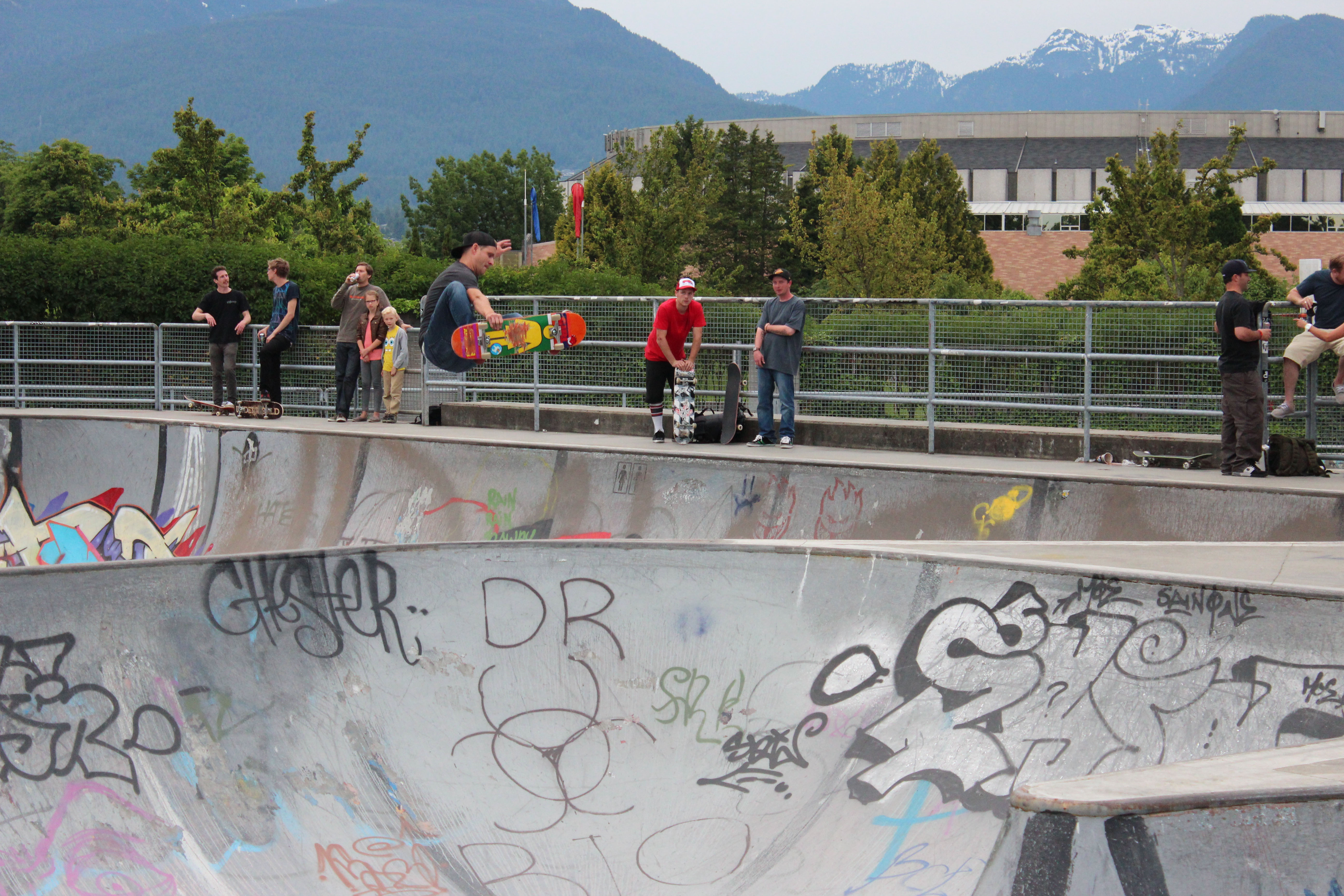 I speak of it as my ChristmasJuly 1st.  Every year we go to Seylynn Bowl and hang out with the massive family of skateboarders we have grown up with in this Lower Mainland over the 14 years we have lived here. It used to be the biggest party of the year, but has mellowed down a bit. There’s still a large group of people hanging out and having a good time, but not nearly as many as the past used to see. I remember 350 person Canada Days… I would say about 100-120 this year. The weather could have been a factor on that note since it looked like it was going to pour rain at any given moment for the first couple hours of the day, and it had rained that morning, but I think a lot of people stopped coming out after the incident with Don Hartley in the bowl in 2009. A large part of the crowd seemed to have dies along with Don, and although his spirit lives on every year at on Canada Day, the atmosphere that he helped to create over the years will never be the same.