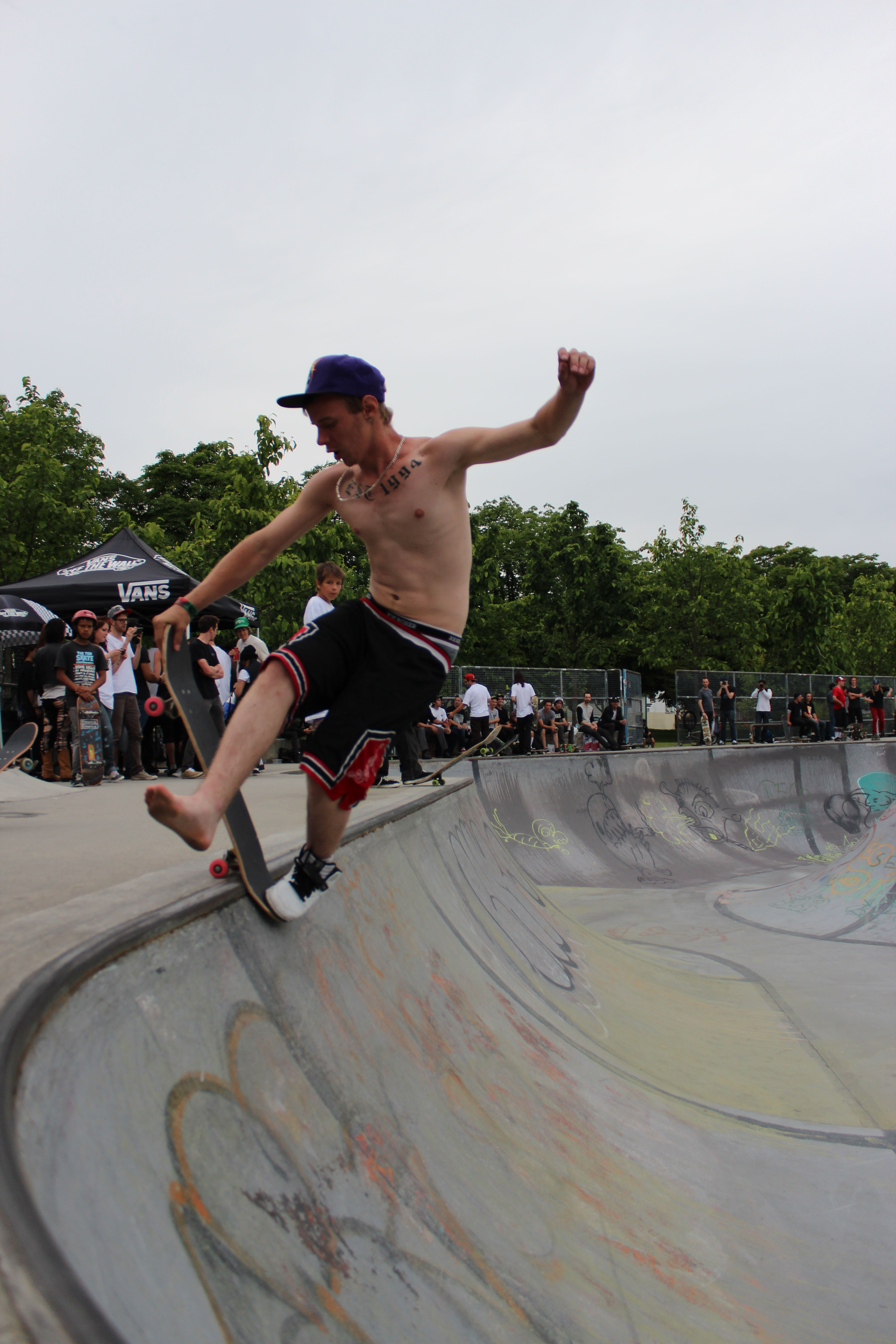 The sun was blazin’ hot and the humidity was definitely hanging around, but it was still bearable enough to skate. Surprisingly for the first time in many, many years, there were more Advanced riders that Beginners. I assume because it was Kwantlen. When I started seeing some of the faces showing up for the Advanced Category, I knew it was gonna be a good show, and a tough contest to judge. With Surrey Locals like Calvin Dignard, Jay Mykyte, Andy Anderson, Jordan Strong, Brad Muscat and Ryan Barron, they were all in the running. But they would have to beat the guys that travelled there, like Ryan Prasad, Lil’ G and of course, “The Dominator” – Dominic Devries.