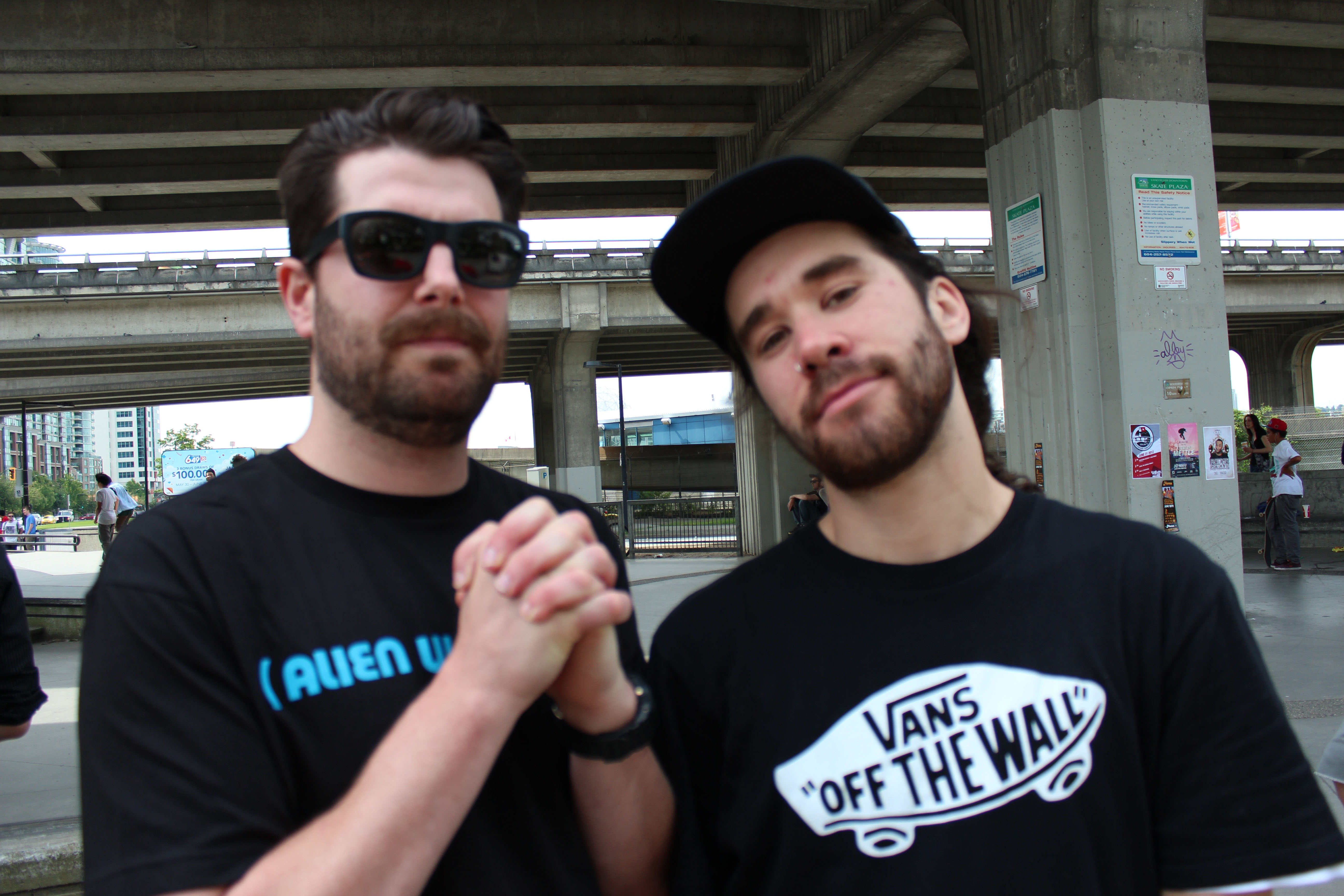We headed out to Hastings and were met by the Local Crew, Surrey Stu Benoit, Timmers, McCallum, Adam Hopkins, and so on. Rob Boyce was there too, one of my favorites to watch. The beers definitely came out at Hastings, like usual. And everyone who knew how to rip bowl, did just that. The tricks were insane, huge airs all over the place, and Frontside Kid was going so fast on his grinds I think he may have melted the coping. Out of all, I think Adam Hopkins was the man to watch. Big airs left, right and centre, tailslides, smith grinds, handplants and more. He even blew the crowd away at one point by tossing out a drunken 540 McTwist in the deep end first try – no pads. I thought that was pretty much gonna shut it down, but then Andy Anderson rolled in just as the sun was dimming – Protest Represent!!
