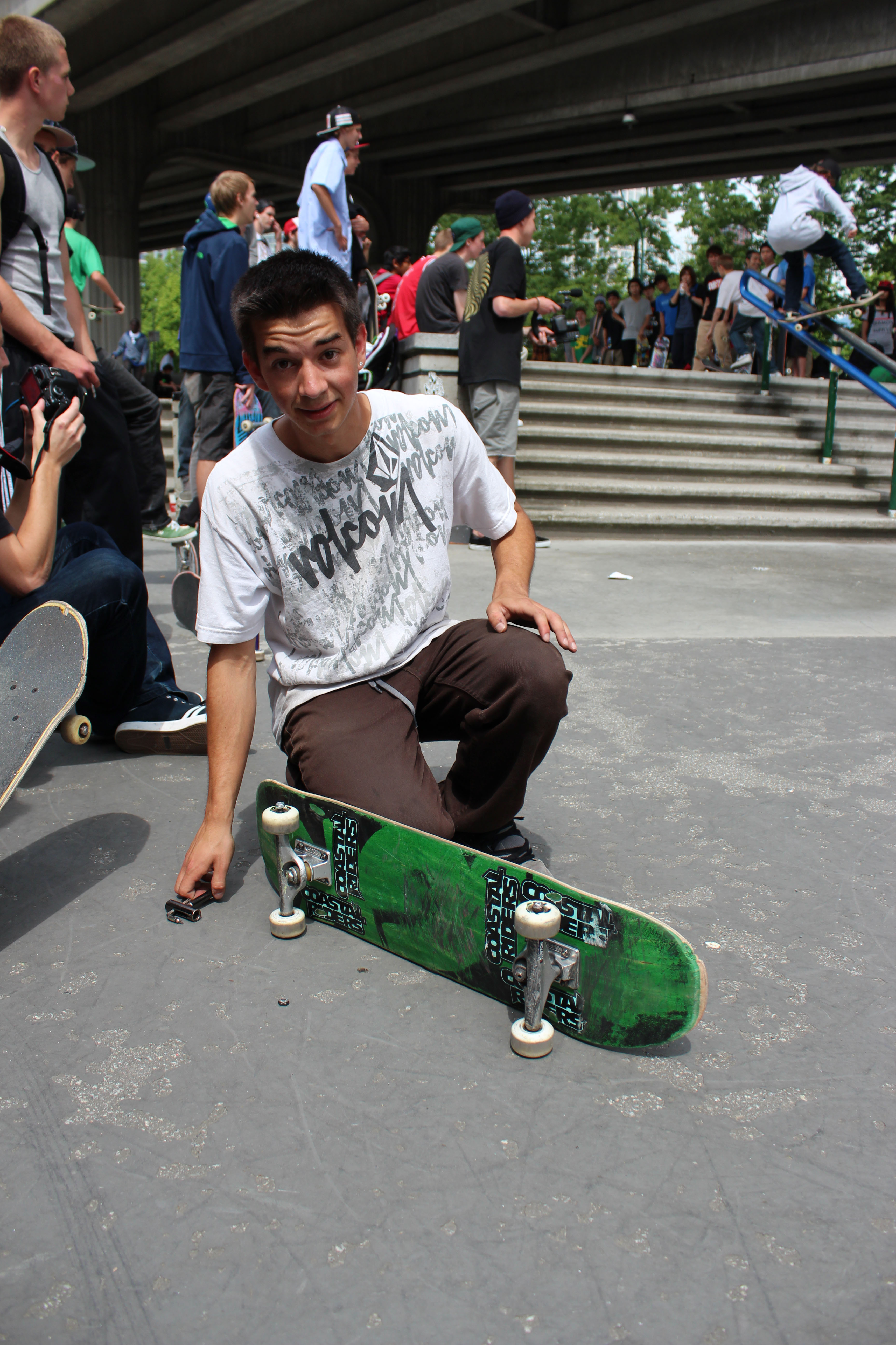 The ladies were hyped up too, Brianna Palmer is just starting out in the contest world so I’m sure she was nervous when she saw the competition that she was about to face. Carrie Williams is finally back in Contest Mode after a few years of missing out, so she brought out all her shovit and 180 skills and landed a ton of tricks. And then Heloise Wathelet showed up with Lil’ G, she’s visiting for the summer from Belgium. This chick’s got some serious talents and it looks like they might take her somewhere. Flip Tricks and Ledge Skills. Check out this video I found of her on Youtube.