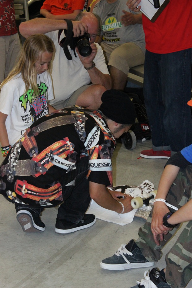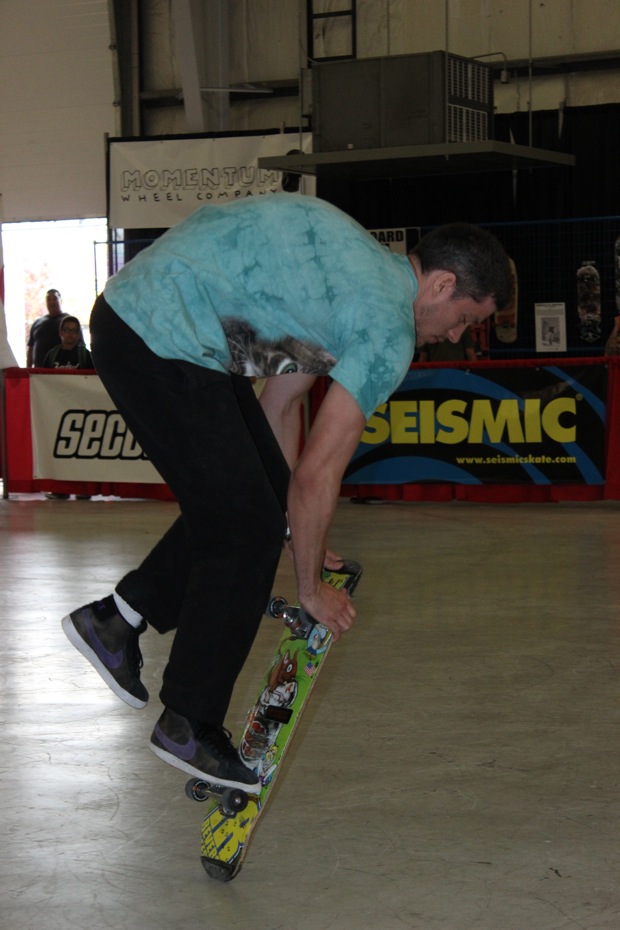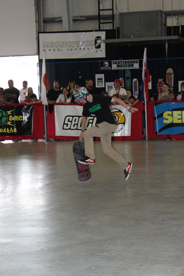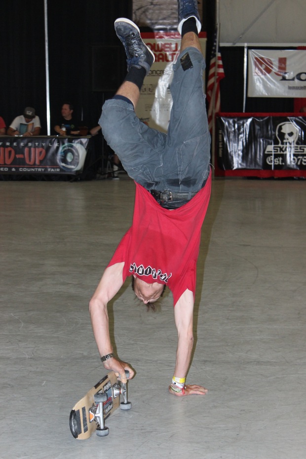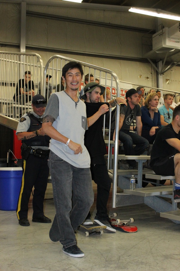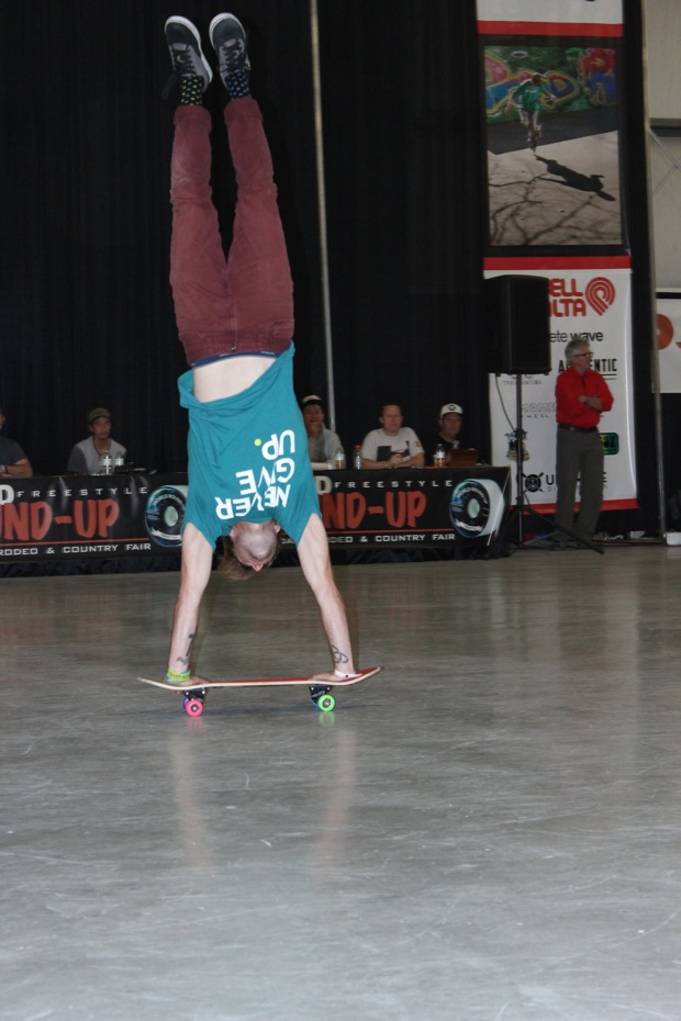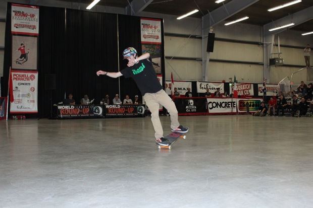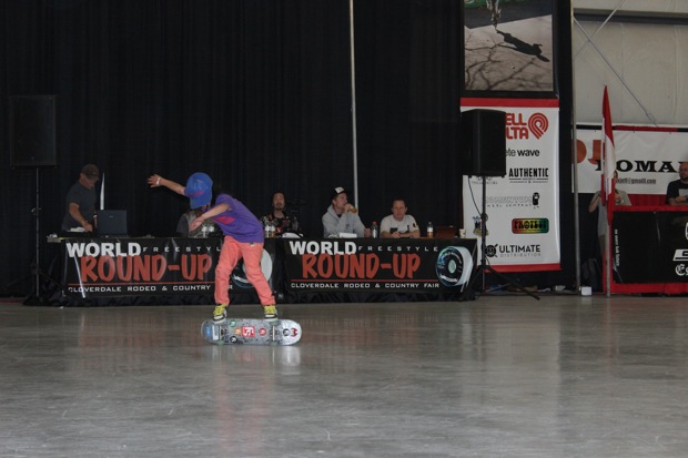 After the first 2 days of the 3rd annual World Round Up Freestyle Championships it is no doubt that this year has the craziest skating going on. With a flock of new Amateurs and a couple old time Pros showing up it is definitely different from last year. All the competitors are stoked to be in Canada again, or for the first time for some, and the positive vibes fill the room. This year’s highlights include a barely 11 year old prodigy child from Japan named Isamu Yamamoto who so far has been blowing away the audience as well as the judges with his pure skills and straight confidence, he is a natural skateboarder and showman for sure. He will be heading into the Finals in 1st place position and will be trying his hardest to continue his successful runs and finish on top of the Amateur division. Right on his tail though is local boy Andy Anderson who is trying a little harder in this his 3rd year at the event. Last year he finished 3rd in Amateur and I’m sure he wants to keep it in the top 3 again. Andy’s skill level, creativity and consistency is awesome and gets all the other competitors excited, especially the Pros.