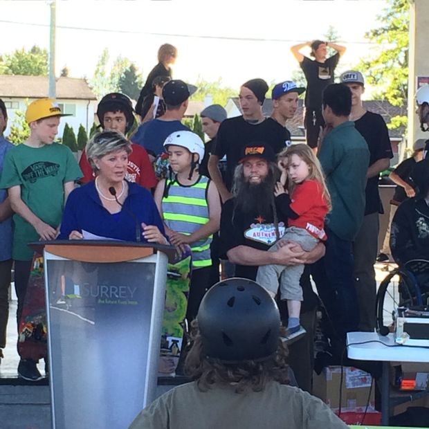 Well, it’s official – The new Cloverdale Skate Park is officially open for shredding. The park was completed about a month ago and people have been ripping it up since the May long weekend but the opening ceremonies hadn’t taken place. June 20th, 2014, summer is kicked off properly in Surrey, BC as the ribbon was cut. Counsellor Mary Martin showed up, made a great speech and made the snip accompanied by some city of surrey members and Constable Troy Derrick as well. It was good.