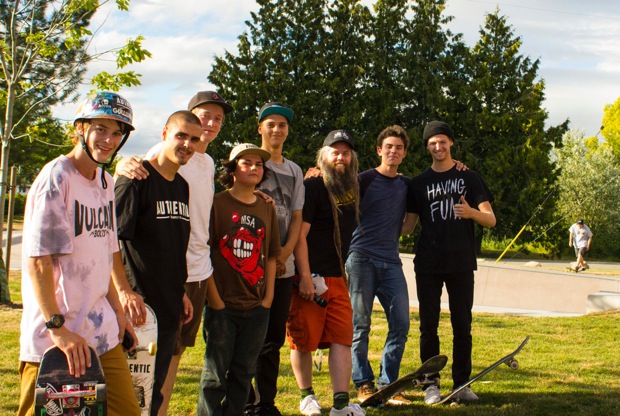 What an awesome day, and a very cool event that ended in success. Calvin Dignard came up with the idea to do a King of the Road style competition throughout the streets of Surrey and so he and myself Hippie Mike made it happen. With multiple challenges for teams to choose from and each of them worth different amounts of points, 10 teams of 4 skaters each headed out into the world of Whalley for a crazy day. Each team had to film and post their progress all day long onto facebook and Instagram with the hashtag #authenticscavengerhunt to prove that they had completed the challenge. By earning points for each completion it was a race to gain the most points in 4 hours. Solid tricks went down, some businesses were upset, cops were on the hunt and everyone was having a great time. It was true street skating at it’s best.