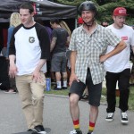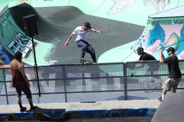 The main point of the day was to have a god time and everyone was down with that, there was Free BBQ, Free Drinks, tons of prizes to be won, and tons of awesome peeps. Donny Chang would pick out the obstacles and I (Hippie Mike) would call out the tricks. Stuff was goin’ down all day and dudes to watch were Tony Casano, Andy Anderson and Zach “Doogie” Lester. Doogie was the star of the show managing to do a heelflip on every single obstacle in some form, but was just stomping tricks solid all day. His best accomplishment was an inward heelflip down the 3 block – BAM! Dudes of all ages and skill levels took home prizes from Street Dreamz, Authentic Board Supply, Protest Skateboards, Huf, DGK, The Hundreds, Vans and more.