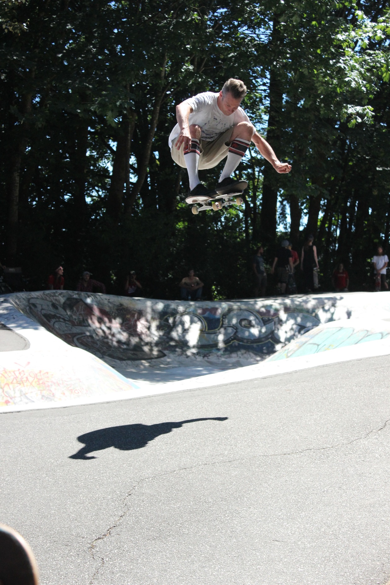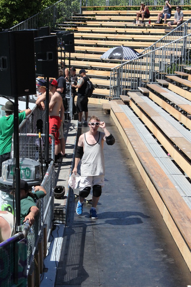 This was the first big Pro contest in many years since the infamous Slam City Jam competitions shut down and the excitement was in the air. Bleachers and grand stands were set up to surround one side of Hastings Bowl and there wasn’t an empty seat in the house for the Finals. Guys from all over North America came out to show their skills, Tom Schaar, Omar Hassan, Mason Merlino, Brad McClain and many others came to try to beat out the local talents of Adam Hopkins, James Clarke and the legend Rob Sluggo Boyce. All 3 of these guys skated well in prelims on Friday and all made the Semi-finals, but only Hopkins got into the Top 6 for the final Finals. He ended in 6th place and that was definitely respectable.