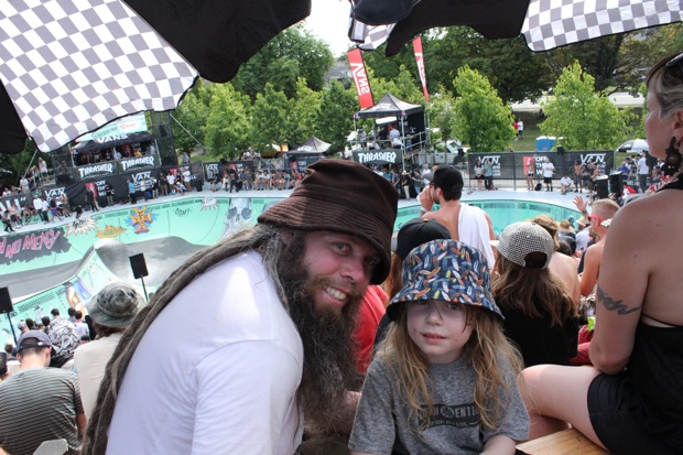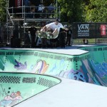 The highlights of both days were focused on Sluggo doing backflips to fakie in the deepend both days which amazingly are the only ones he ever landed on concrete. The crowd will remember those forever. A great guy to watch was Riley Stevens, he came out to have fun and that is what he did, best trick had to be popping out of the 9 foot to smith pick on the fence and back into disaster for the ride out. Dude had a smile on his face the whole weekend and the feeling spread. Tom Schaar killed it vert style tossing a couple different 540’s around the bowl and a few kickflip indy’s but he didn’t quite make Top 3. Brad McClain reminded the crowd who skates the fastest, Raven Tershy showed who could hang in the air the longest of every hit and Alex Sorgente just plain laid it down all over the bowl to take 1st place.