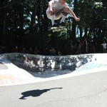 Over a hundred people showed up and hung out all day long and with much surprise a whole whack of people in all categories showed up from the mainland and represented hard. We started off with the Mini and Beginner divisions and kids were jumping off the 2 stair stage, hittin’ coping on the quarter pipes and even trying crooked grind the rails. These kids worked super hard and had a great time for sure. It was a perfect start to the day. After handing out some prizes and $$’s I took a little break to rest my knee that happened to dislocate a bit earlier in the day and then got ready for the craziness, 18 people in Intermediate and almost 30 in Advanced.
