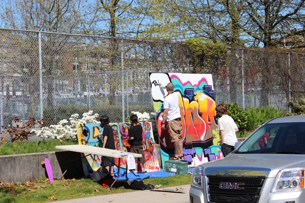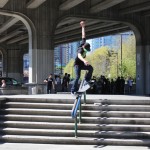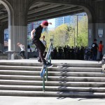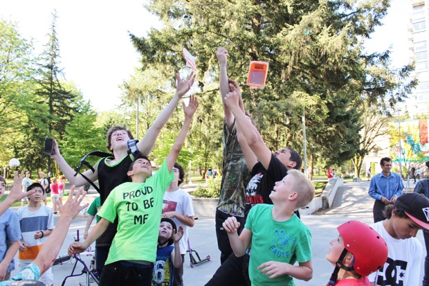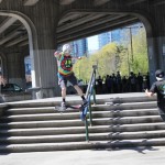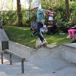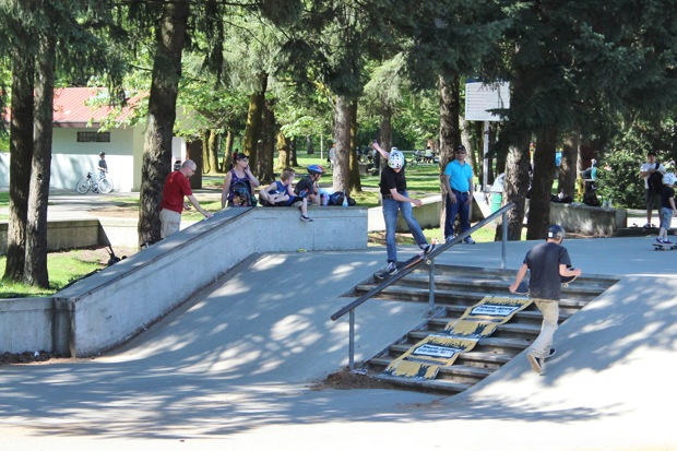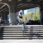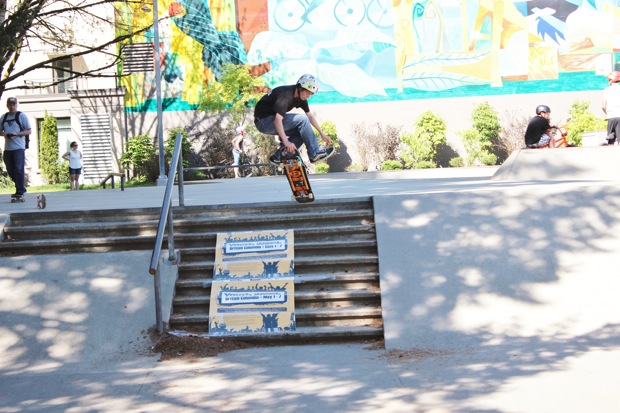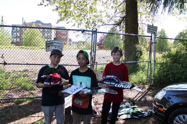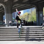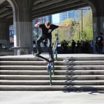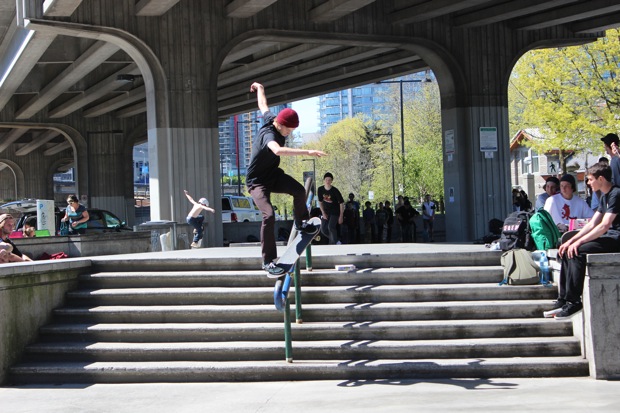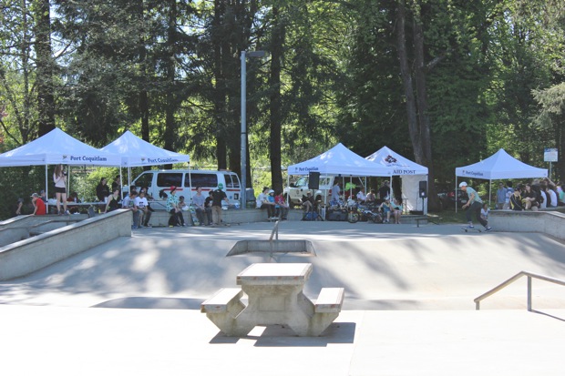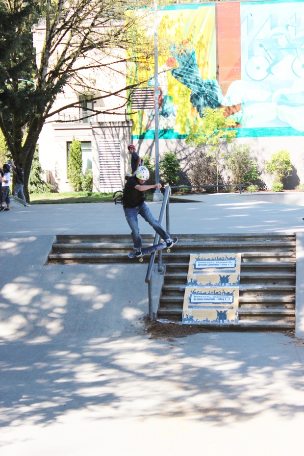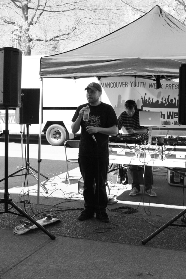 Organized by Jeff Cole in cooperation with the Vancouver Skateboard Coalition, Michelle Pezel at Anti Social, Thunderbird Community Centre and some others, the Vancouver Youth Week Jam was a hit yesterday. It was sunny, very warm, and lots of kids showed up. Old School Langley’s Thom Prior showed up to MC and run the events, with classic comedy of course. Thom actually used to co-MC events in Surrey back in the day with Hippie Mike. There were tons of “Trick Comps” on many different obstacles throughout the afternoon and most of the kids there took home a prize or two. Protest riders Andy Anderson and Brad Muscat cleaned up pretty good but gave some of what they won away to the younger kids that need it more.