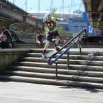 We did have a Best Trick down the 9 stair at the end but only a few guys competed. Brad Muscat hit some tricks down the rail and got a hat for a frontside tailslide to fakie, Allen Handley got a Nyjah DC Shirt with a sit down hurricane grind down the hubba and Weston Ganger took the Coastal Deck for his frontside nosegrind down the hubba – tough trick. You’ll be able to see all the footage once the documentary is finished.