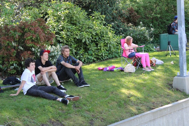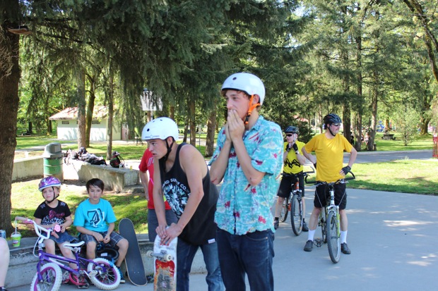 The Girls did their thing for about 4 minutes but they didn’t do too much. Tienna and Steph are both learning so they can just ride around and they did good. Carrie usually rips up Fraser Heights poppin’ tricks on the big banks and over the sets but her knee is all messed up and she couldn’t do much, but she still did her best. Hopefully she’s all healed up for South Surrey in 3 weeks.