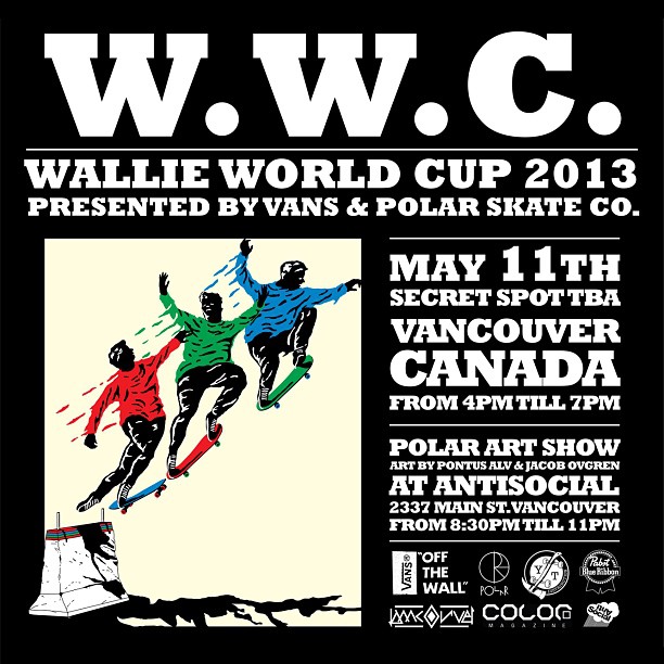 Vans, Polar Skate Co. and AntiSocial Skate Shop bring you a special secret spot event called The Wallie World Cup and it’s happening this Saturday, May 11th. It’s all about who can wallie the highest barricade so they will just keep adding 2×4’s to the top and see who the champ is. Take your guess at who it will be, there are way too many options out there, and who knows, maybe some random dude we never met before who just practices wallies all day long might show up and show us who’s boss….