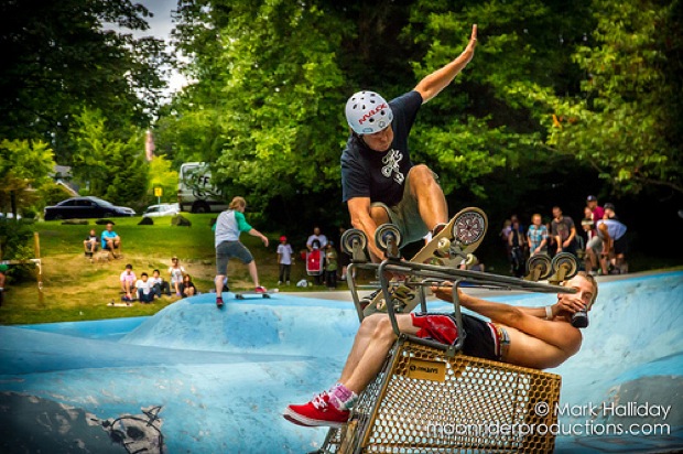 PS, the highlight of my day at Griffin, was airing over my teammate Fighter as he laid inside the shopping cart I was blasting over out of the bowl. That, or maybe laughing so hard, as Alex Chalmers tried to pass off his judging duties on the girl Nora, a skater visiting from Denmark, sitting right in front of us. After some coaxing, she was a judgeskateboarding rules!