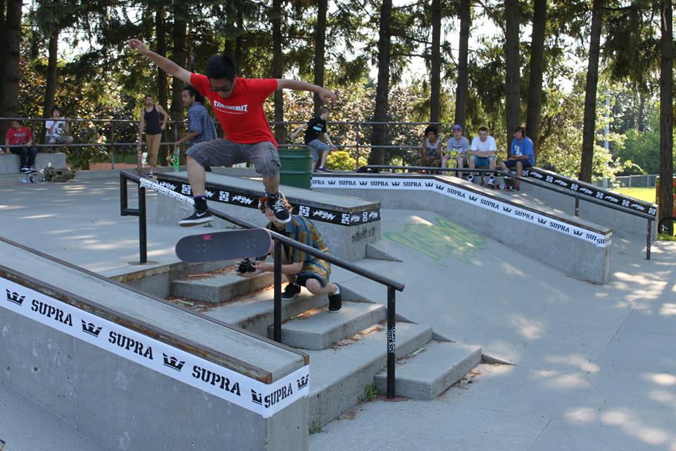 Delta skate shop Street Dreamz hosted their 2nd annual Canada Day Jam at North Delta Skate Park, and it was a success. Lots of local rippers showed up and showed off including Dominic Devries, Calvin Dignard, Ryan Prasad, Jacob Drescher and Gabe Dinorscio. This Canada Day was gorgeous and hot so it was a perfect day for an event. The North Delta Skate Park was one of the most popular destinations back in the mid 2000’s and helped a lot of amazing skaters like Scott and Ryan Decenzo, John Hanlon, Magnus Hanson and more to excel into legends of today. It seemed like the next generation of up and comers was representing hard at this event, and these are the names you will be discussing in the future. Great job everyone.
