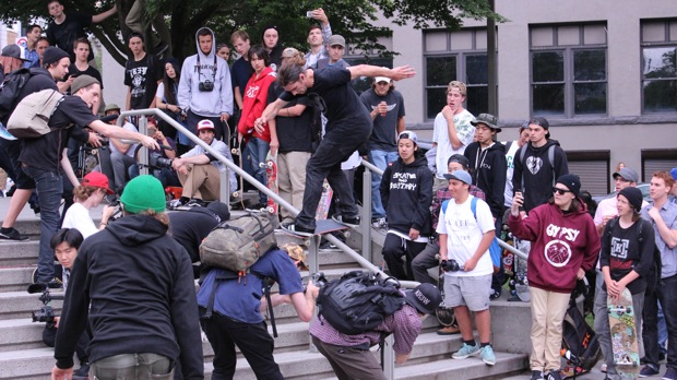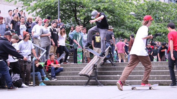 With the help of so many others sponsoring the contests, kids were showing up in flocks. There are a ton of local skateboarders that I can think of right now who I may never have met if it weren’t for these competitions, but instead built a family style relationship with. I still remember JR Barron and his cousin Nick Logan coming out to Cloverdale contest 7 years ago. It was JR’s 5th birthday that day and him and Nick were so tiny and they were just bouncing around on there skateboards together trying whatever they could even though neither of them knew what they were doing at all, and I can still remember the noise from the crowd being a roar of mixture of laughs and cheers. It made the day so awesome, and it made me realize how young some kids were that were coming to my events – I had to create a special Mini Category just for kids 10 & under. And now JR is turning 12 years old and kick flipping big gaps and hitting rails and stuff, and me and him are still great friends, he’s a Hippie Mike’s Tour de Surrey die hard who comes to every event. And there’s all the Langley crew that I watched grow up into the amazing skaters they are today – Dustin Locke, Hashbrown, Jordan Repin, Zaz & all that crew. And Magnus, the Decenzo’s, John Hanlon the Man Child, all these guys used to hang at these contests too back in the day, and Drew and Stu and Jay Mykyte – Cisco Goding, Jeff Cole and Jon Irvine, Andy Anderson, Jaden Easton-Ellett, Brad Muscat, so many friends… They were a great place to learn how to compete and to have a great time with friends, and that feel is still there. The generations change each year a little bit, but the majority of regulars still come to every single stop on the tour. It brings tears to my eyes every time I think about the milestone we are reaching this year. 10 years!! If anyone had tried to tell me 10 years ago that the world of skateboarding would be accepted in the way it is today by now, I wouldn’t have believed them. And in fairness, I think that this series has had a lot to do with that acceptance that has become reality in and around the Lower Mainland with competitions and skate parks in general. I work hard every year to make this happen and I thank everyone who has been and will be a part of Hippie Mike’s Tour de Surrey. We have taught safety, we have taught freedom, we have taught style of competition, but most of all we have built a family of skateboarders who love to have fun together…