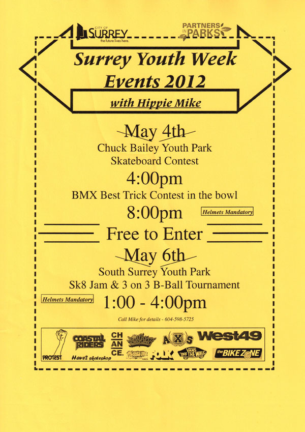 I was standing by my truck at Kwantlen Park setting up for the kickoff contest of Hippie Mike’s Tour de Surrey for that year and just broke down into tears. There was at least 50 people around, but suddenly I was standing alone – a moment I’ll never forget. I just wanted to go home, but I couldn’t. I’m Hippie Mike – and it’s my Tour de Surrey. I said my last words to Don out loud not caring who heard me, wiped away the tears and walked back over to my chair. I knew that Don was a legend. I knew that his death broke the hearts of thousands of people. But mostly I knew that he was always so stoked on skateboarding and watching people learn, and that was what these competitions are all about. I asked DJ Cuzo to play me some sweet Reggae music and the show began. It was a tough day, but it was all for Don. I got through the contest, packed up and went home, and found the first cd that Don had ever made me – 72 minutes of sweet Reggae Vibes. I love you buddy.