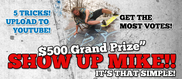 A WINNER HAS BEEN ANNOUNCED!! Sean Lowe has won the Show Up Mike online skateboarding contentst.