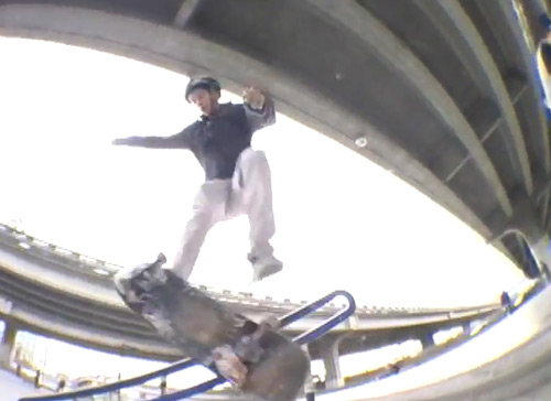 I`ve taught a lot of people a lot of tricks over my 26 years of skateboarding, but I think Andy is the one that learned the most. This kid rips any tranny and now he`s totally hittin`up street obstacles all the time too – and all on a fat nasty 1989 style board; rails, risers, rat bones. Andy goes straight from rail sliding the big rail and the double kink rail right into the bowl for a complete demo of tricks. He`s one of my favorite skaters to watch and I`m proud to have been a part of his life as he grew up.
