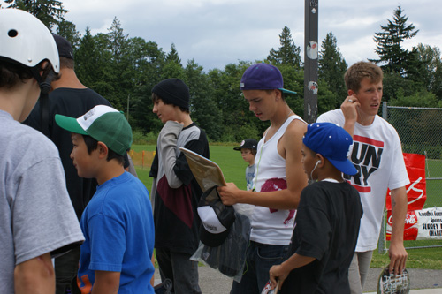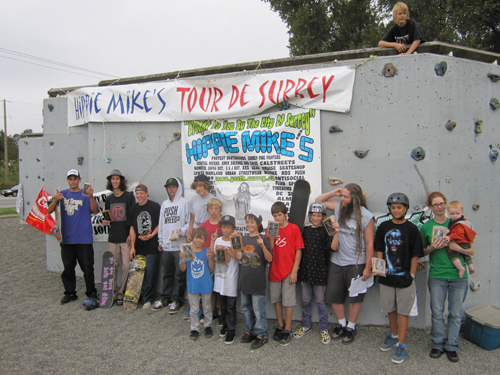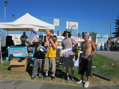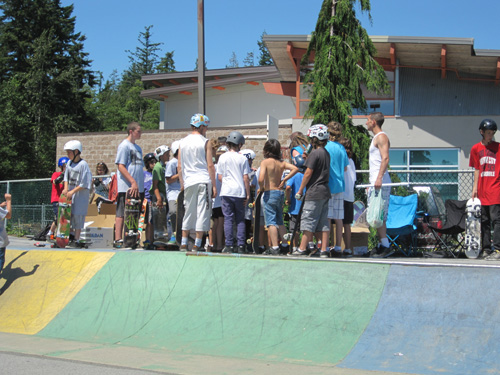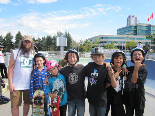 The Grand Opening day was perfect, a little cloudy but no rain. I would have to say close to 500 people around, 300 being skateboarders, bikers, and rollerbladers. We had plenty of indoor events happening, and 3 different demonstrations – The Surrey BBoys break dancers, Bioulles BMX Demo, and the Kevin Harris Freestyle Skate Demo which wowed the entire crowd. Kevin brought Kai Dunkel, a 22 year old up-and-comer form Germany, and Ryan Brynelson, a 19 year old local from right here in North Delta, both extremely skilled at this rare style of skateboarding. But of course no one can touch the level of expertise the Kevin brings to the surface with 35 years of experience. He blew people’s minds, and taught them history on the microphone all at once. Check out the demo on You Tube.