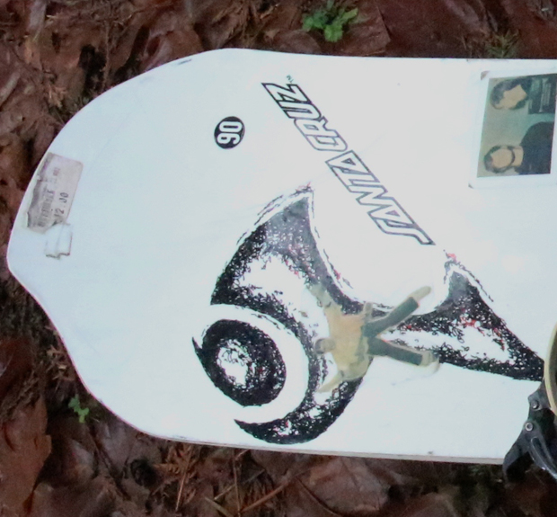 So I went up to the mountain, strapped in and looked across the halfpipe, no warm up, and raged at my backside wall hard. I flipped a perfect McTwist and stomped it leaning a tiny bit forward. Well my snowboard at the time had been through a lot, and anyone who remembers that old SMA I rode would tell you that it probably wasn’t safe to have on the hill. There were spots were portions of my base were missing from too much rock riding, I had 23 pop rivets holding my edge in, and the nose was cracked right across the board in front of the binding. So when I landed this beautiful McTwist, I broke the nose and it was standing straight up in the air. I rode away about 10 feet and fell over. Fareed said it didn’t count and I called bullshit. I said that’s a rebate because of faulty equipment. And I strapped back in, nose bent 90 degrees up and rode hard into the pipe. I stuck the McTwist and finished off a full run down the pipe. We argued all night and probably for months afterwards about who won that bet, and neither of us would pay the other. But one thing that was for sure was that I needed a new Snowboard. I went down the street to Cash Converters figuring they would have some cheap piece of shit I could ride and boom there it was… The board of my dreams. It was like a movie when the shining lights are flashing around an object and everything else in the picture is obsolete. I almost cried in joy. It was the 1990 Santa Cruz Twin Tip Double Cut, the exact same one that my snowboard Idol Ken Leamen had the day I met him, and it was only $12.