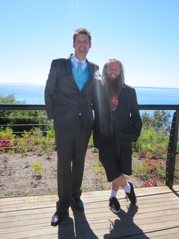 Brought together by fluke through the City of Surrey, Jordan Wiebe, the man they call “DJ CUZO” started backing me up at all my skateboard competitions as my DJ about 6 or 7 years ago. He had good taste in tunes and enjoyed being part of the events. We became close friends when I found out he was good at golf (Really Good) and we started inviting him out to our weekly trip to The Meridian Par 3 in White Rock. Then we just started hanging out all the time. Jordan is such a friendly giant, standing 6’6” tall but always showing everyone love and affection. Saturday, August 4th, 2012, the day came where he and his long time girlfriend Jessie were tying the knot at Kwamais Point Park. It was a wild wedding of course, 30 something degrees outside, sun just beaming on us, eagles soaring around in the background, and best of all, the bride showed up. They got married, took some photos and then we all headed over to Belle’s Restaurant in South Surrey. It was great time – from awesome food, to swordfights in the parking lot, Cuban Cohiba Cigars, a breakdance demo by the “Now or Never Crew”, and Cuzo himself even got up and rapped for his new lady in front of everyone.