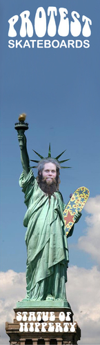 We have 2 new designs for our standard decks The Protest Peace/Rasta Team Deck and The Hippie Mike-Uncle Sam Deck which both come in 5 sizes 7.5”, 7.75”, 8”, 8.25” & 8.5”. The 2 bigger sizes are made with a longer wheelbase to properly match the widths!