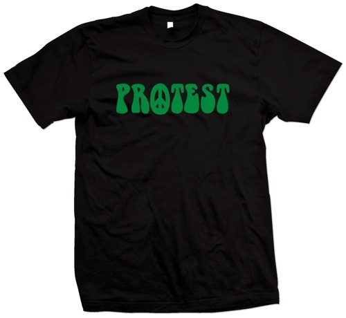 We have 3 standard T-shirt designs The Protest Peace, The Protest Fist, and The Protest Peace Sign on Tie-Dye shirts. And there’s also the option to customize your own T-shirt or hoody with some of our other special designs.