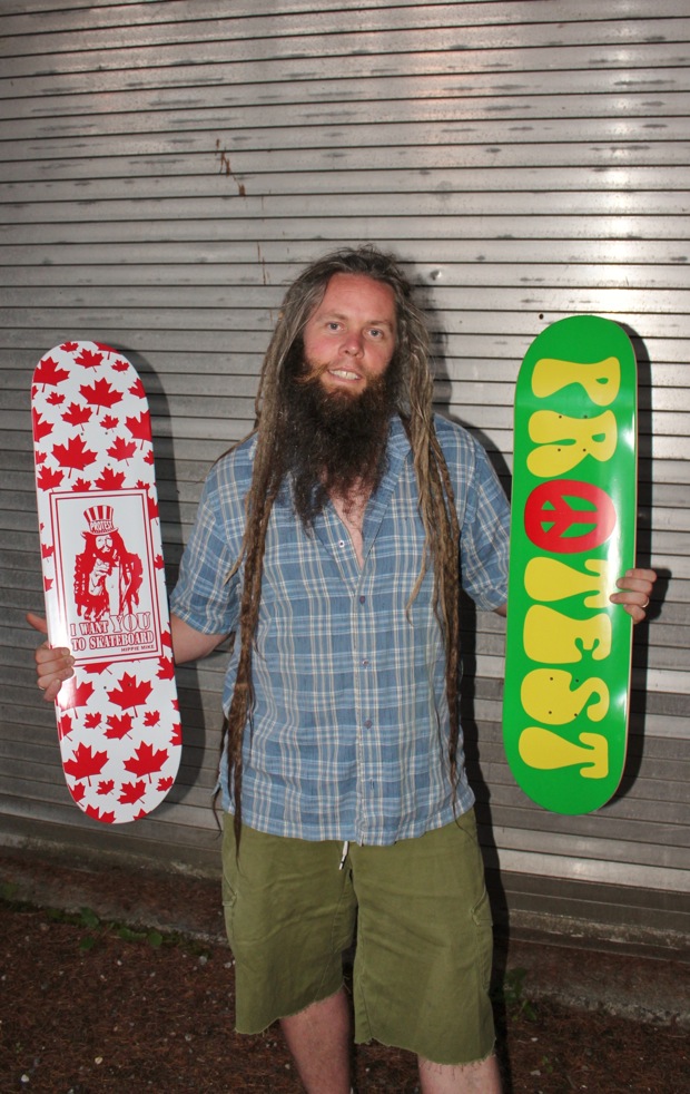 Jaden always showed a good sense of responsibility and had a lot of self-motivational drive inside him. Then one day he told me that he designs websites and would like to set one up for Protest. So we did – that was in a about 2010. As Jaden’s knowledge with internet and website management was growing, he was learning about how the website could actually begin to produce income. So last year we decided to take our friendship to a whole new level and work together to help make Protest Skateboards Website a place where the skateboard world can stay connected with what’s happening in the Lower Mainland and we made some changes. Jaden became a partner in the business, and invested some funds into it, but wasn’t legally old enough to sign on as a full partner, until now.
