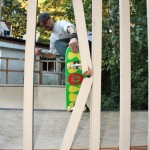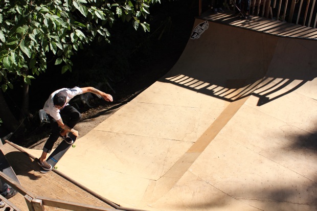 The Beginners had to skate hard after seeing the Minis. Everybody came out flying but the first runs were owned by Olek Khrystoyev as he kickflipped and varial flipped everything in site but in the Finals Fletcher Chan took it to another level with huge gaps and solid landings. No one could keep up with the Park Local though who even had a shirt saying PLAZA across the chest – Joey Livingston as he destroyed the park and lit up the crowd. At the end of the finals he gapped over the big 3 block and all the loc’s went wild – 1st place all the way Joe!