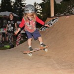 Starting about an hour behind schedule the contest got underway with a small group of Mini’s that all wanted to win a special Plaque. Little 7 year old Presley Huska stepped up the game right away as he tried to ollie the big 7 stair over and over landing it every time and just slipping out. He rode away in the finals jam and the crowd was pumped up for the day. 5 year old Kaelen Faux shredded the whole park in Mini with style and skill, and 10 year old Aidan Eastman took advantage of his final time competing in Mini by throwing down everything he had on the table and taking home another 1st place plaque for his collection.