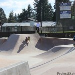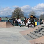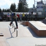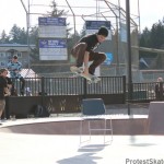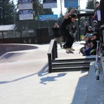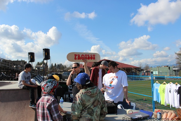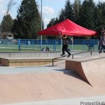 It was one of the first big contests of the 2013 season, and Dan Pageau couldn’t have chosen a better date. The Spring Kickoff Contest at Pitt Meadows lived up to it’s name by being on a beautiful Spring Day, and the day the clocks move ahead. Tons of kids showed up, lots of Locals for Pitt Meadows and Maple Ridge, and lots of the One Love Skate Shop Crew. Lanny Deboer and Andre Tsougrianis both hung out and skated a bit, Lanny won the highest air contest out of the bowl, and then MC’d a bunch of the contest. But we had a full sized crew show up from Surrey and Delta, including Jordan Strong, Brendan Nielsen, Ryan Barron, Jacob Drescher, Mathew McCauley, and JR Barron, along with Hippie Mike, Carrie Williams and Jaden Easton-Ellett with the Protest Skateboards Tent.