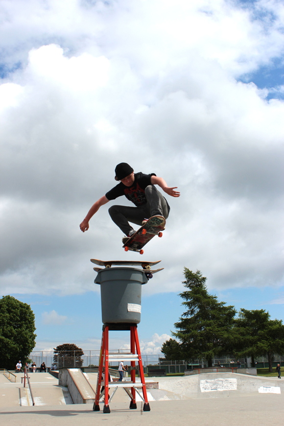 It was looking promising as I pulled up to the Chuck Bailey skatepark on May 4th, 2012 to start setting up for the skateboard contests planned to take place later that day. You could see the sun starting to peak through the clouds and the bright blue sky was making its way over the park. There were already a decent amount of people warming up and there was a good vibe in the park, with lots of familiar faces from those who competed in Hippie Mike’s Tour De Surrey last year. The only difference with this contest was that it was only going to be open to people 18 or under because of Youth Week and Jaden Easton-Ellett and Andy Anderson were going to be MCing it.