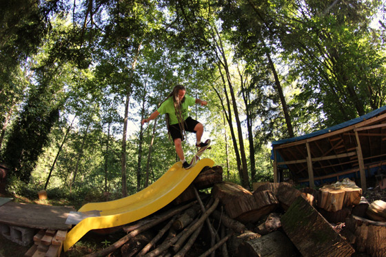 At the end of June, my awesome filmer/team rider Jordan Strong emailed a link to this online contest that Lucky Surf and Skate Shop was having where you film, edit and enter a video part up to 3 minutes long. I tortured Jordan by taking him to some of the nastiest street spots around every day when he got off work and getting him to film me, but that’s the way I skate. We worked hard together to make this part, and of course we filmed way more footage than we needed to. From bare foot skating to riding the yellow slide, and I even pulled out the 2×4 skateboard for the first time n years, it’s a must see for creativity.