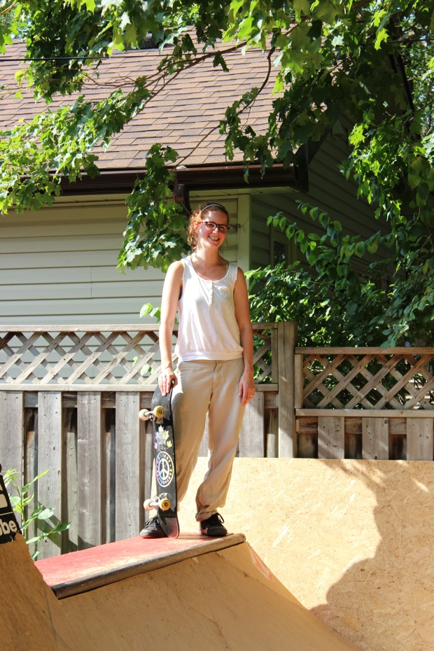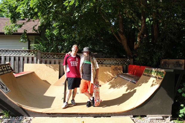 We flew in on the Sunday evening and you could see the humidity, but we were blessed that we weren’t stuck at all in that insane flood of rain that hit Toronto the next day and shut the whole city down. They got over a year’s worth of rain in 1 hour – how the hell do you see that coming? Up in Barrie it was all good and we met up with some friends and family to get the vacation started. Doug Williams‘ house seems to always be a central hang out and you get to play darts against Kevin Creelove and Mike Van Noortwyk (Noorty) while you’re there. They are tough to beat. So we spent a few evenings there seeing lots of people. We met up with Jay Coulson the second day we were there and we skated his little mini-ramp.
