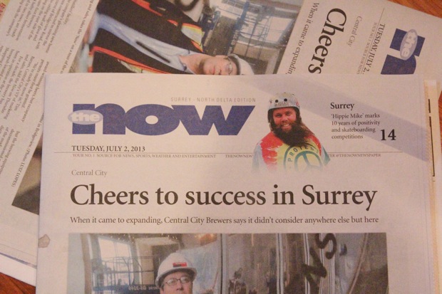 This company is focused on promoting skaters that are teens and children only. They are hosting competitions for kids 13 and under in 5 different countries this summer, and have created a magazine that will be hitting the shelves in the matter of weeks. Sean drove up from Toronto to meet me for the first time as we had been talking over the phone and by email for a while. We discussed a bunch of opportunities for us to collaborate, and it sounds like I will be writing for their magazine, along with some other amazing things. It was a great lunch meeting a Moose Winooski’s, and I had my oldest nephew Riley Robinson with me to be a part of this new venture. I look forward to being a huge part of this new Top Grom era. After the meeting, there was really only one place to go – the Barrie Skate Park. I remember it took years of meetings and petitioning and a bunch of work to get that skate park built back in the 1990’s, and they ironically finally put it in the year after I moved away to BC. So I’ve only ever skated it a few times, but I know which obstacles I like there. I’m still recovering a strange injury I had in the middle of June when I jammed my ankle at Seylynn, so this was the first time I had skated anything but tranny in a while. You could tell – my pop wasn’t poppin’ and my flips weren’t flippin’, so I tried to stick mostly to this weird rising quarterpipe they have there. The design of the Barrie Skate Park isn’t that bad, but the concrete job is terrible filled with lumps and bumps all over that shouldn’t be there. I really don’t like flat banks that are steeper at the bottom than at the top… I only filmed this 1 trick there, body varial noseblunt near the top of the quarter, and it wasn’t easy. Plus pushing as hard as I could across the entire park in 35 degree sun doesn’t help, but I did skate Bear Creek and Confederation Park for many years, so I know how to handle it. Thanks to the local kid Dylan for filming it.