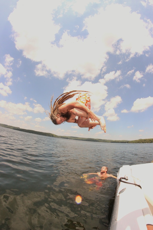 When we moved away these guys were barely old enough to drive, and I had been a huge mentor to them in Snowboarding for many years. Both went on to become sponsored riders for Burton after I left and it had been since our wedding 10 years ago that all of us were in the same room together. Eric picked up me, Carrie and & Kaelen early morning and we grabbed Shane from his Unity Market and Studio downtown and started driving to Huntsville. Eric’s got a cottage and boat there and we needed a day on the lake.