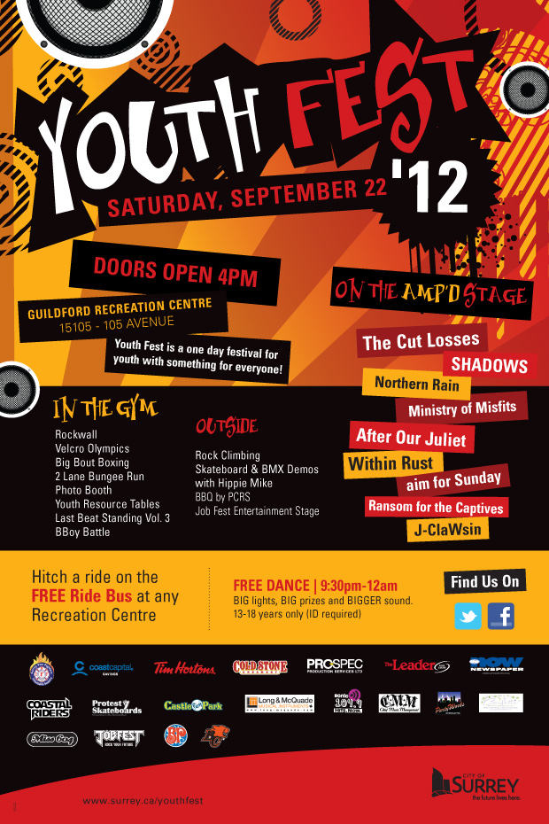 Every year the City of Surrey celebrates the next generation of young adults with Youth Fest at the Guildford Recreation Centre. Lots of exiting stuff will be happening from 4-10pm this Saturday, September 22nd, including Band performances, indoor and outdoor games, the Teen Dance, Breakdance Competitions, Ryan Brynelson Freestyle Demos, and of course the Skateboard vs. BMX Demo in the Bowl – hosted by myself Hippie Mike and featuring Andy Anderson and James Van de Kamp. This will be the final event at Guildford Bowl as it will be shut down and demolished in October due to the beginning of the construction for the new Lap Pool being built on to the Rec Centre. The street section will remain open and untouched but the bowl has to be removed and eventually will be replaced with some new features in the future…