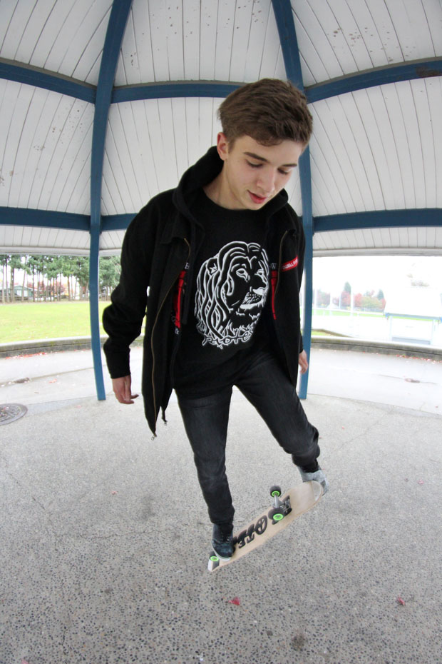 Ryan: I’m 20, and I started skateboarding when I was 8. I got my first board you know like most kids, at some point in their life they get a skateboard for Christmas, and of course it’s a Walmart Skateboard, and uh, so I just started puttering around on that. I would just kind of ride around on that you know goofing around and stuff, and then when I was 14 I saw Lords of Dogtown and Dogtown and Z-Boys and something about those movies just made want to start doing tricks and stuff. It showed more of a community in skateboarding for me you know where normally I’d be skateboarding with the kids up the block, but then I was introduced to the Dogtown Movie and I kind of saw more of a community there and it was very attractive to me. I saw that and I thought it was really cool you know.