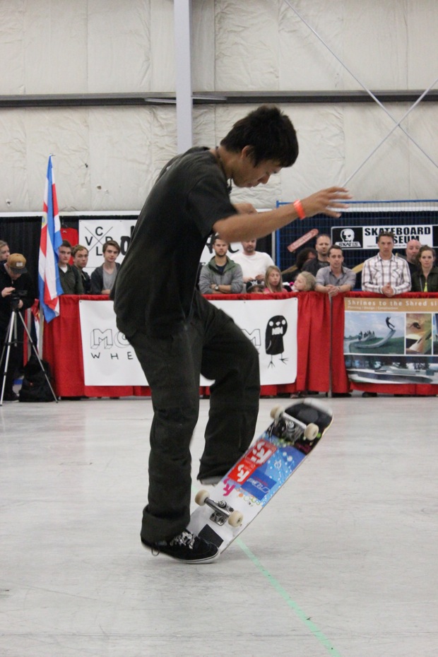 There are less than 300 people in the world that refer to themselves as Freestyle Skaters and Ryan is proud to be one of them. Last year at The World Round Up Freestyle Championships in Surrey, BC, Ryan won the Amateur Division and the year before he had gotten 2nd place. So for year #3 of this event we felt it was time for Ryan to move up to the Professional Division and what better way to do it than to introduce his new Pro-Model Deck at the event. Ryan had to fly back to Canada from Japan for this event and he was stoked, but knowing the freestyle world well, he knew the guys he would have to go up against, the world’s best Freestylers who have been dropping the same routines for as long as he’s been alive. It was a great event and Ryan did really well, he came out strong the first day in Prelims, and moved up in position after the Semi-Finals being placed in 6th, and after crazy runs from everyone on the Sunday, Ryan Brynelson finished in 10th at the Finals – not bad for his first ever Pro Contest.