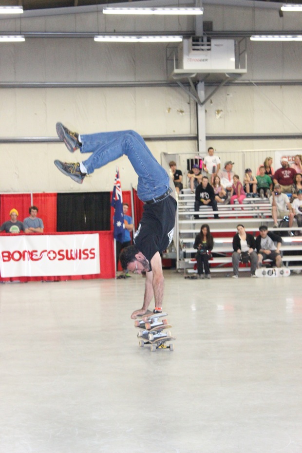This event has been something else, every time your blink your eyes some other mind-blowing tricks gets stomped down. I have never seen so many handstands in my life, and all of these guys can flip out of them and land perfect every time, some can even double flips. The footage I have been capturing will change your outlook on skateboarding completely when you see it – Primos, Truck Stands, 1 foot spins and Cocunut Wheelies, there is no limit. One of the best tricks I filmed so far was a moving handstand with a bunny hop ollie still in handstand and then kickflip out by the Dr. Bert Mathieson, who is in his 50’s.