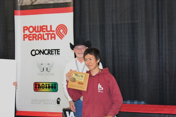 I gotta give it up to all the Pros, this was a difficult competition and even though they all love each other like family, everyone was there with the same goal to win. Per Canguru from Brazil went into the Finals in 2nd Place but had some difficulty in his runs and ended up in 5th. Masahiro Fujii from Japan destroyed the place and had the crowd going crazy all day every day and ended up in 4th Place. Mike Osterman from USA is one of the most solid skateboarders I’ve ever seen, he stomps every trick with more power than he uses to pop them and he pulled through for a 3rd Place finish. The biggest surprise of the contest was Seya Nakano from Japan who is not a sponsored Pro but entered into the Pro Category in hopes of success that would help make that sponsorship happen, and I think his chances of it happen are very high now since he put on an amazing Demo of how good he is and ended up in 2nd Place. So good!!