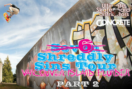 Here’s the second part of footage from the 6 Shreddly Sins Island Tour with Adam Hopkins, Drew Summersides, Dan Redmond, Jorden Murray, Desmond Hoostie and Danny Tumia. The Tour took place over the summer of 2012 across Vancouver Island. This video shows stop offs in Courtney, Nanaimo, Sooke and everyone’s favourite – Drunken Duncan.